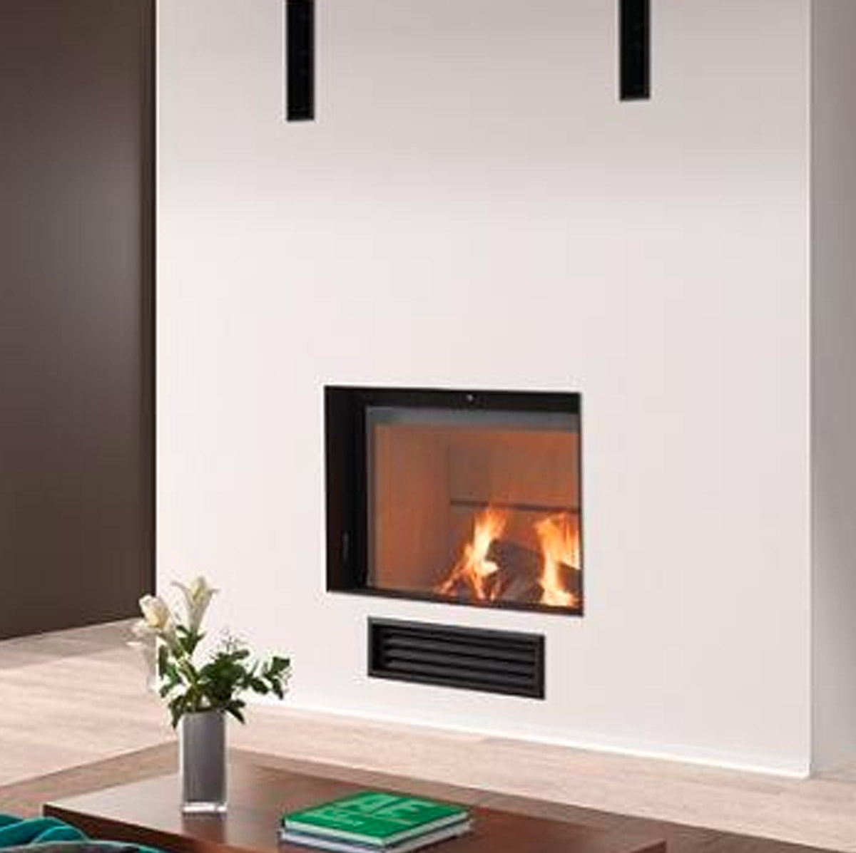 Impact visuel : la grande vitre frontale rend le foyer très visible, donnant une ambiance chaleureuse et spectaculaire — très apprécié dans les régions où le chauffage au bois fait partie intégrante du charme des intérieurs (Valence, Ardèche, etc.).