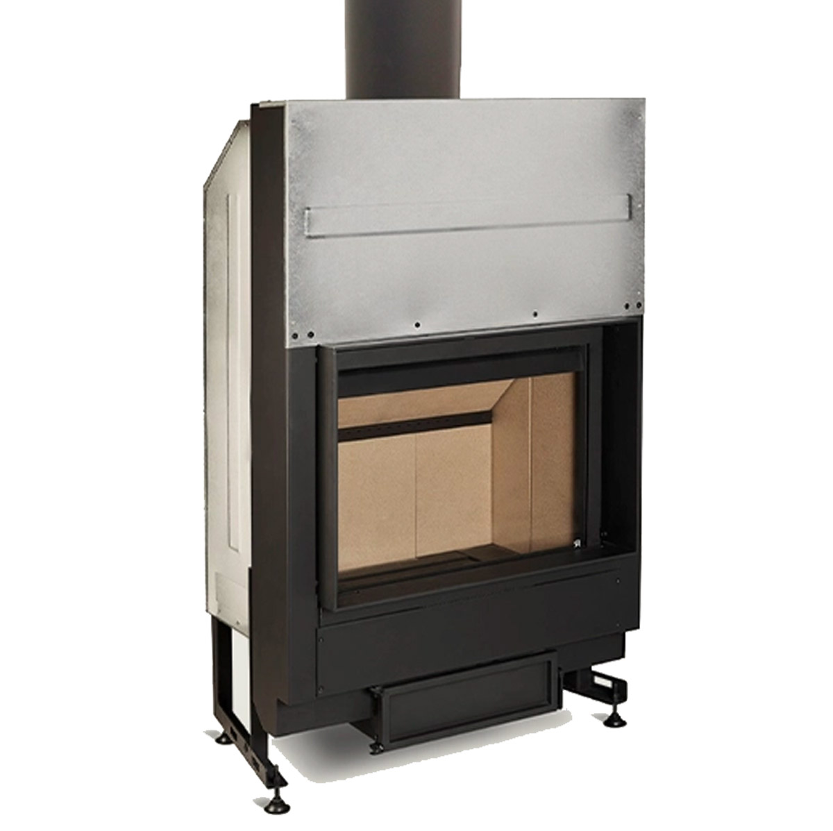 Version frontale : parfaite pour remplacer une cheminée ouverte traditionnelle, avec un gain considérable en rendement.