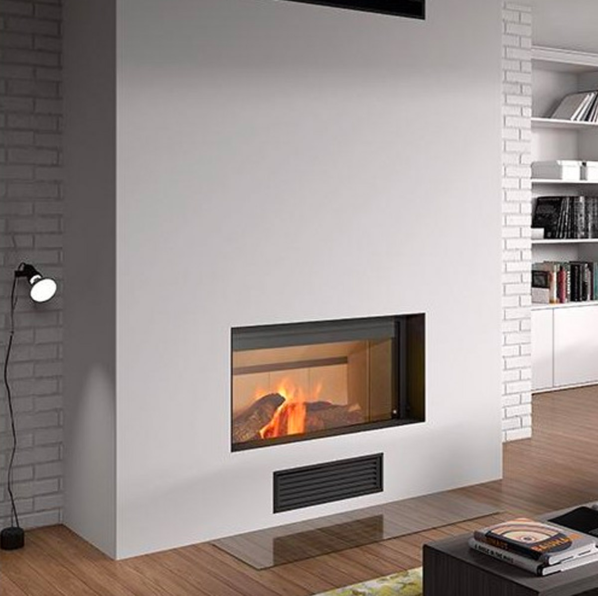 Impact visuel : la grande vitre frontale rend le foyer très visible, donnant une ambiance chaleureuse et spectaculaire — très apprécié dans les régions où le chauffage au bois fait partie intégrante du charme des intérieurs (Valence, Ardèche, etc.).