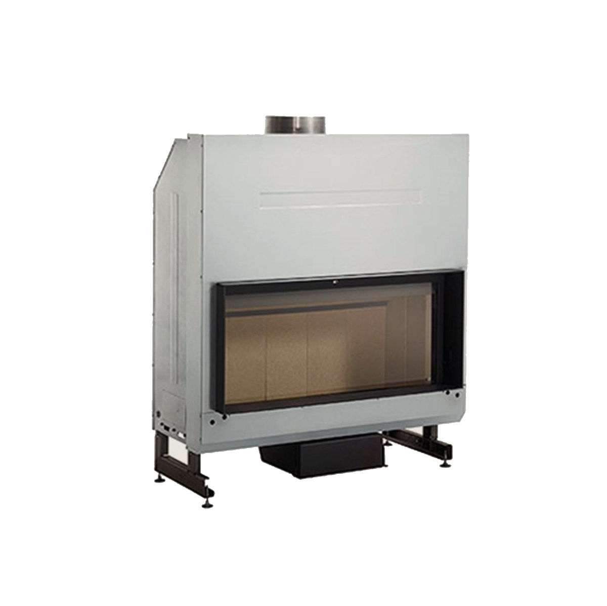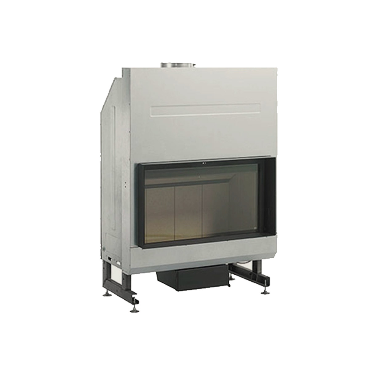 Palazzetti Ecomonoblocco Angle gauche (WTX 80L) : foyer installé dans un angle, avec une ouverture à gauche, parfait pour chauffer deux zones attenantes.