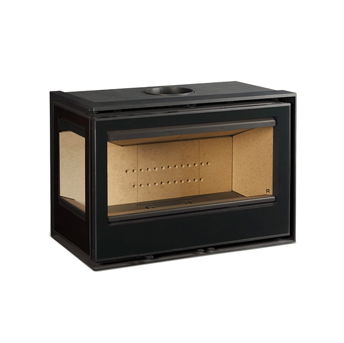 Vision latérale enrichie : en plus de la façade frontale, la vitre latérale créée un effet visuel de profondeur et permet d’apprécier le feu depuis un angle, utile pour des agencements où le foyer n’est pas appuyé sur un mur plat.