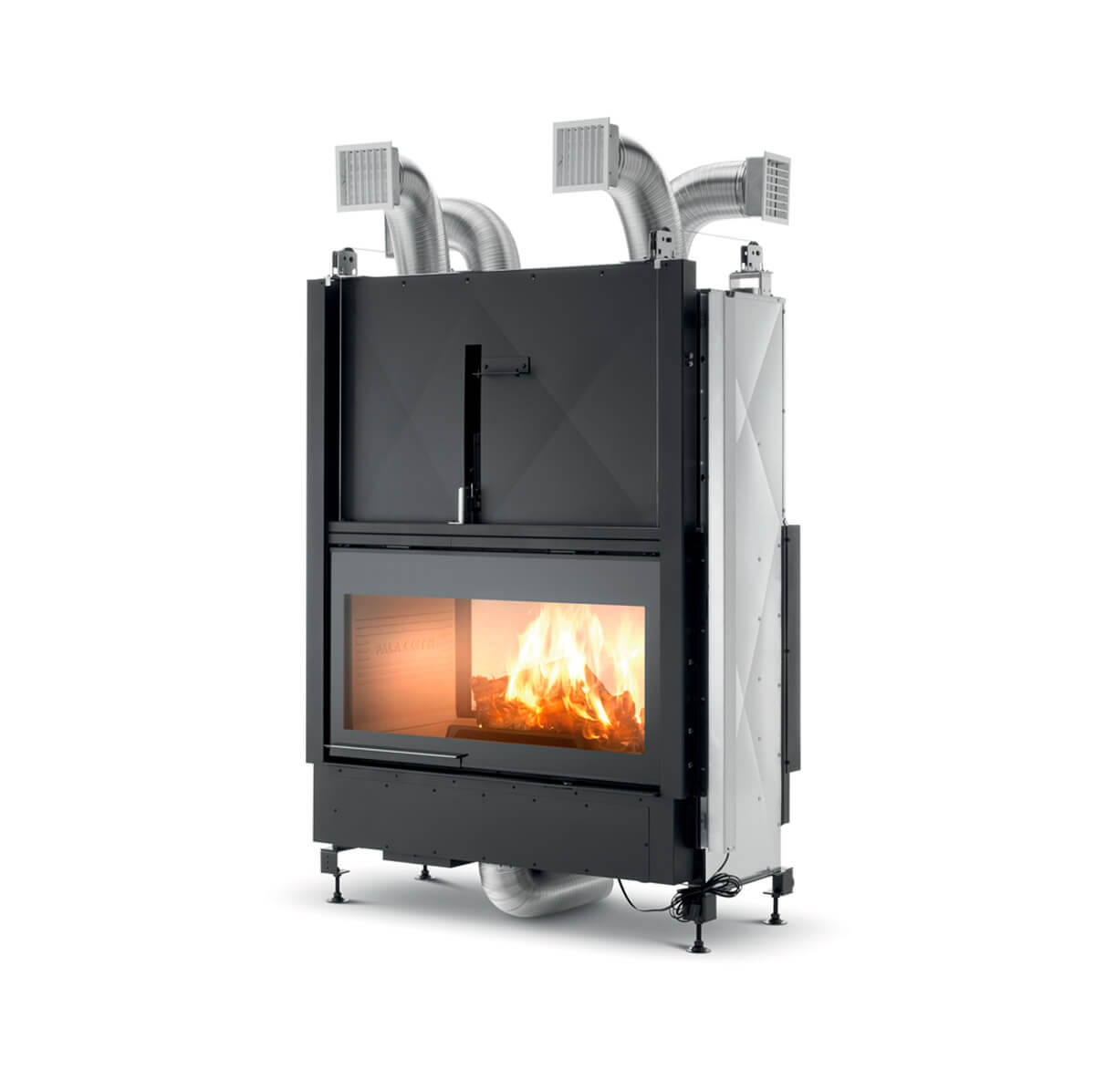 Version bifaciale : pensée pour relier deux pièces, elle assure une vision traversante des flammes et une double diffusion de chaleur.