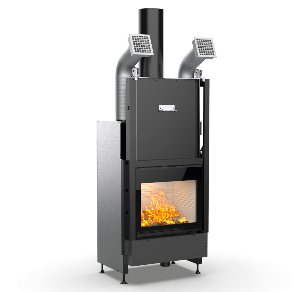 Version frontale : parfaite pour remplacer une cheminée ouverte traditionnelle, avec un gain considérable en rendement.